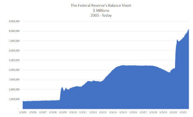 Making more dollars, though? That happens all the time. We call it Quantitative Easing, and it’s contributed about 8 trillion dollars to the total worldwide supply since 2005.