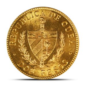 Cuban gold pesos from the First Republic period are appreciated by collectors for their historical background and beautiful designs. These gold pesos were first produced in 1915 during the presidency of Mario García Menocal. The coins feature the Cuban coat of arms on the obverse and display the face value, date, and a portrait of Jose Marti on the reverse. Struck in 90% gold, they were issued in several denominations, including 1, 2, 4, 5, 10, and 20 pesos. Right now, 2 Peso Cuba Gold Coins are available to you through BullionMax.
