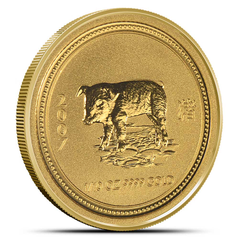 The Year of the Pig closes the twelve-year cycle of the Chinese zodiac. Representing completion, abundance, and good fortune, those born under this sign are known for kindness, honesty, and a generous spirit. The 2007 release marked the final entry in the Lunar Series I collection from Perth Mint. Today, you can find 2007 1/10 oz Australian Gold Lunar Pig Coins available at BullionMax.