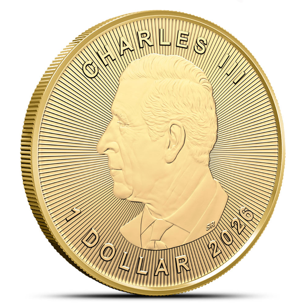 The obverse of the 2026 Canadian Gold Maple Leaf features the new portrait of King Charles III. Designed by Canadian artist Steven Rosati, the left-facing portrait shows the King without a crown. This marks only the third time in history that a Canadian artist has created a royal effigy for the nation’s coins.
