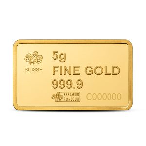The obverse of the Liberty Bell Gold Bar features horizontally arranged inscriptions. From left to right, you will see the PAMP Suisse logo, the weight, metal content, purity, and the unique serial number for the bar.
