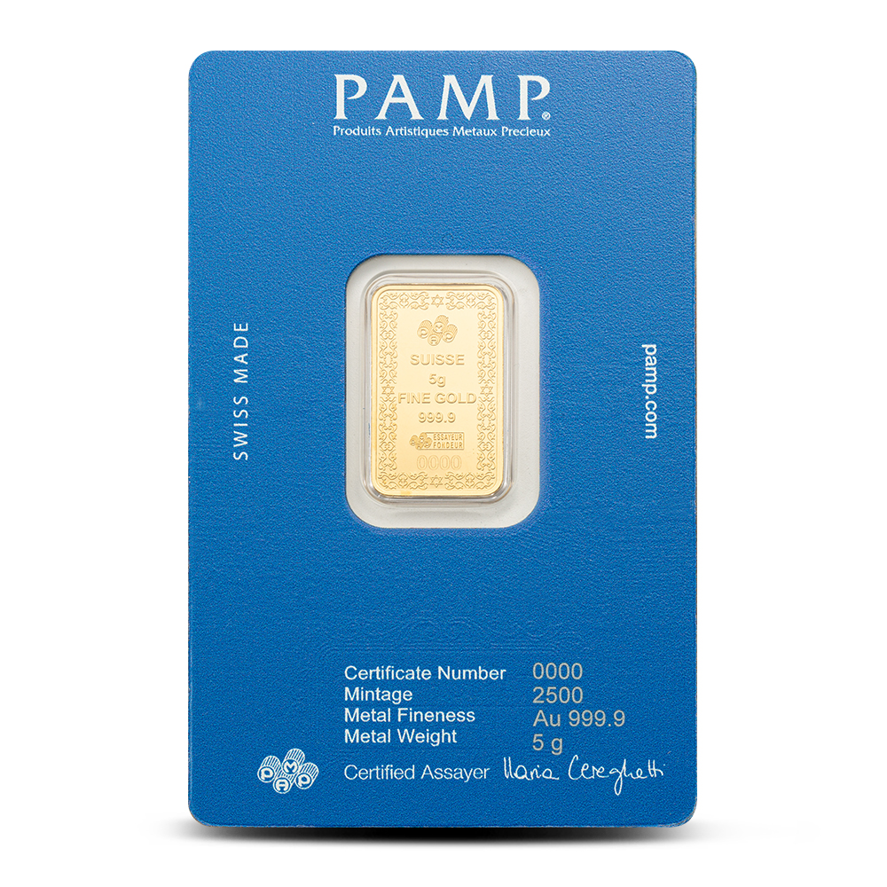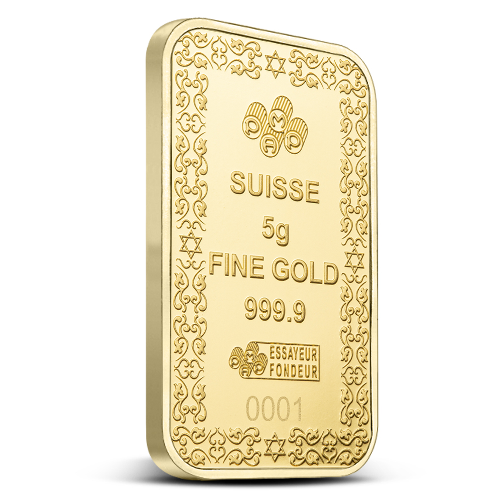 Each 5 Gram PAMP Suisse Star of David Gold Bar is packaged in a sealed CertiPAMP assay card featuring an image of the Western Wall and comes in a gift sleeve. Every bar is inscribed with a unique serial number.