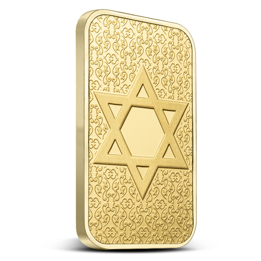 Symbolically, the Star of David has held deep meaning within Jewish tradition for centuries. The two overlapping triangles are often interpreted as showing the link between God and humanity — one pointing upward toward the heavens, the other downward toward the earth. This shape reflects the meeting of the divine and human worlds. Now, you can find 5 Gram PAMP Suisse Star of David Gold Bars available at BullionMax.