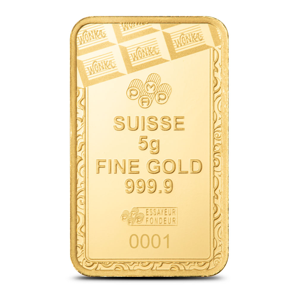 5 Gram PAMP Suisse Willy Wonka Chocolate Gold Bar (New w/ Assay)