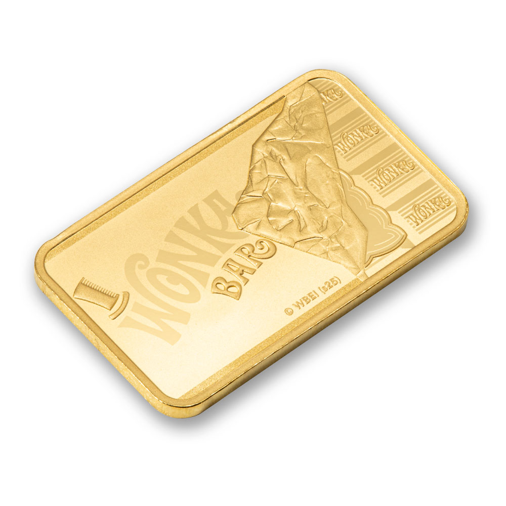 Roald Dahl’s famous chocolate factory blends imagination with candy-making, full of playful ideas like everlasting gobstoppers, fizzy lifting drinks, and chocolate rivers. This 5 Gram PAMP Suisse Willy Wonka Chocolate Gold Bar nods to that world, featuring the well-known Wonka Bar in a festive design. Today, 5 Gram PAMP Suisse Willy Wonka Chocolate Gold Bars are available at BullionMax.