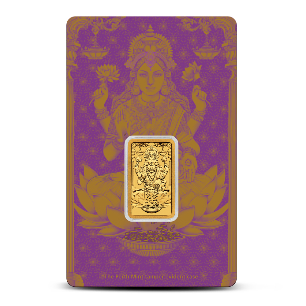 In Hindu culture, Lakshmi is more than a religious figure—she’s part of everyday life, business customs, and seasonal celebrations. Families look to her for blessings on new ventures, peace at home, and lasting prosperity. During Diwali, the festival of lights, many people clean and decorate their homes to welcome her, as tradition holds that Lakshmi visits tidy households to bring good fortune for the coming year. Perth Mint recognizes this tradition with gold bars featuring her image. Today, 5 Gram Perth Mint Lakshmi Gold Bars are available at BullionMax.