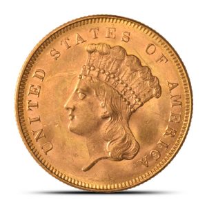 The three-dollar gold piece is one of the most unusual, short-lived denominations in US coinage, struck only from 1854 to 1889. It was introduced to make buying sheets of three-cent stamps and other small transactions easier at the time. Today, we offer Pre-33 $3 Indian Princess Gold Coins from random dates here at BullionMax.