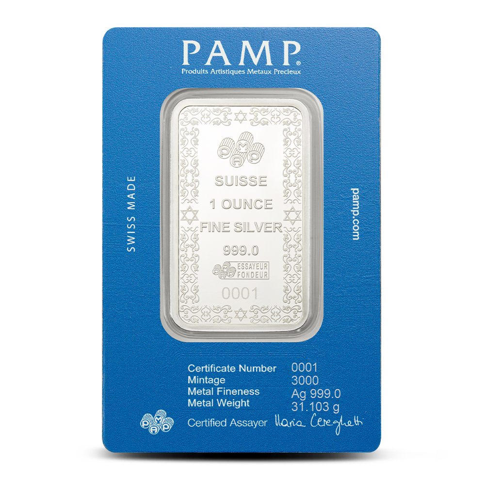 Symbolically, the Star of David holds deep meaning in Jewish culture and broader spiritual traditions. Its two interlocking triangles are often seen as representing the connection between God and humanity — one pointing upward toward the divine, and the other pointing downward toward the earthly. Today, you can purchase 1 oz PAMP Suisse Star of David Silver Bars from BullionMax.