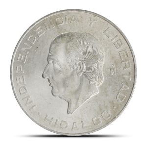 Issued in 1955 and 1956, the 10 Peso Mexican Silver Coin features a portrait of Miguel Hidalgo y Costilla, a Catholic priest who became one of the leading figures in Mexico’s fight for independence. Because of its nearly 1-ounce weight and 90% silver content, the coin became known as the Hidalgo Grande. Today, you can find 1955-1956 10 Peso Mexican Silver Coins in About Uncirculated (AU) or Extremely Fine (XF) condition available at BullionMax.