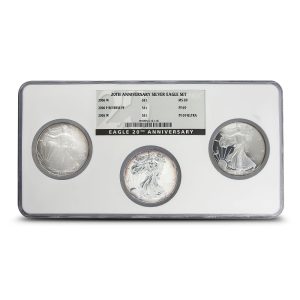 In 2006, the United States Mint marked a major milestone: the 20th anniversary of the American Eagle series. First released in 1986, the American Silver Eagle and American Gold Eagle became the nation’s official bullion programs. To honor two decades of these well-known issues, the Mint created a special anniversary release of Silver Eagles. Right now, certified 2006-W Proof American Silver Eagle 20th Anniversary 3-Coin Sets are available from BullionMax.