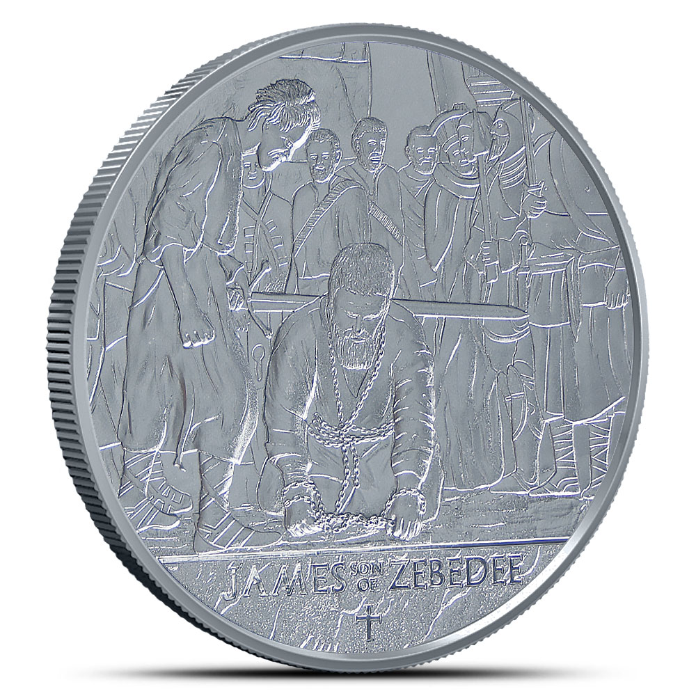 The Martyrdom of the Twelve Series is a silver coin collection honoring the dedication and sacrifice of the twelve apostles of Jesus Christ. These individuals were some of his closest followers, many of whom faced harsh persecution and death because of their faith. Today, BullionMax is offering the 2025 1 oz Black Proof Republic of Ghana Silver James the son of Zebedee Coin as the second release in this meaningful series.