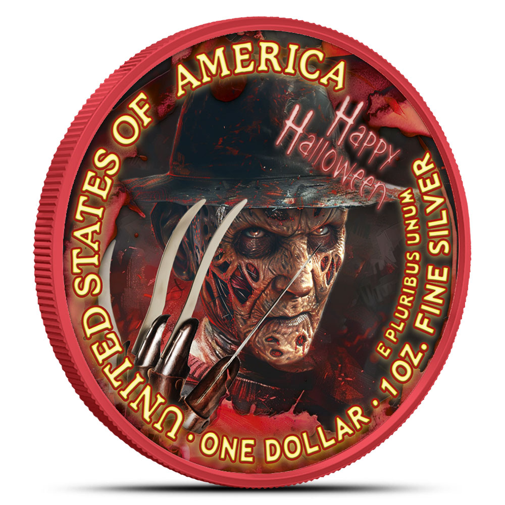 In 2025, Germania Mint gives the American Silver Eagle a fun seasonal update with a set of colorized Halloween releases. The obverse still carries the classic Walking Liberty, now set against a color-enhanced backdrop that ties in with the theme on the reverse. Each reverse showcases a different Halloween character to bring a festive look to this well-known silver coin series. Now, 2025 1 oz Colorized Halloween American Silver Eagle Claws of Fear Coins are available online from BullionMax.