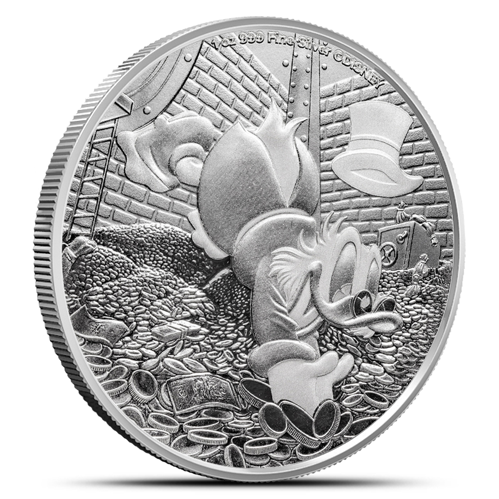 Scrooge McDuck was first introduced by Disney cartoonist Carl Barks in 1947 in the story Christmas on Bear Mountain. Inspired by Charles Dickens’ Ebenezer Scrooge, Barks reimagined the character as Donald Duck’s wealthy Scottish uncle with a big personality and a love of adventure. Now, BullionMax offers the 2025 1 oz Niue Scrooge McDuck Silver Coins for collectors and fans alike.