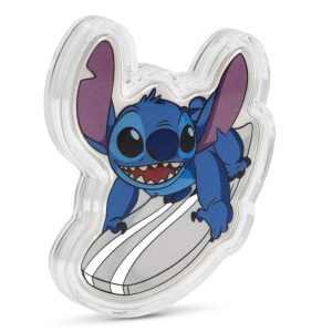 Stitch, also known as Experiment 626, is the blue alien star of Disney’s Lilo & Stitch (2002). Designed by Dr. Jumba to be a force of destruction, Stitch ends up on Earth where he meets a girl named Lilo in Hawaii. Their bond helps Stitch discover friendship and what it means to be part of a family. BullionMax now has 2025 1 oz Proof Colorized Niue Silver Stitch Surf’s Up Coins available.