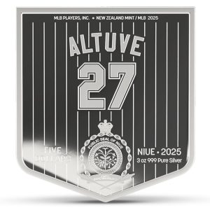 Jose Altuve is a professional baseball player from Venezuela who has become one of the most successful second basemen in Houston Astros history. Despite being 5’6”, he has proven himself as a reliable hitter and strong defensive player. Right now, you can order the 2025 3 oz Proof Colorized Niue Silver Major League Baseball Jose Altuve Coin from BullionMax.