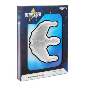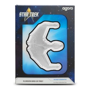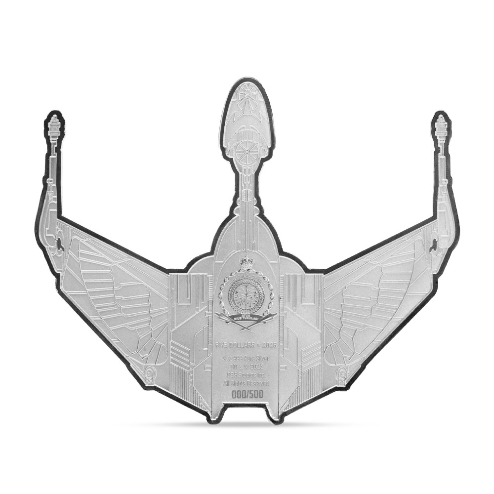 For the overall reverse design, the Klingon Bird of Prey is shown in full shape. Its menacing profile represents Klingon values in battle, with its striking appearance designed to instill fear in those who face it.