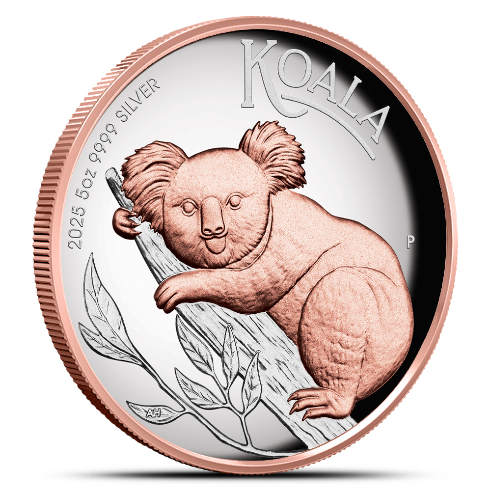 The Australian Koala Series is a well-known program from Perth Mint. Introduced in 2007 with a 1 oz silver bullion coin, it has grown to include proof versions, high-relief designs, and even pieces accented with 24-karat gold. Now, the 2025 5 oz Proof Australian Silver Koala Coin is available through BullionMax.