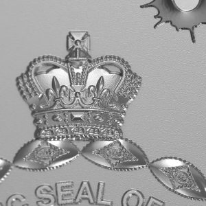 On the obverse of the 2026 2 oz Proof Silver THUG-QT Coin, you’ll find the Public Seal of Niue. The seal shows a ring of seashells, native plants, and a Sovereign crown above. To match the training-theme look, the field also includes bullet hole motifs, as if shots passed through the “target.”