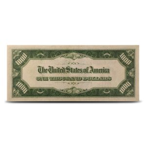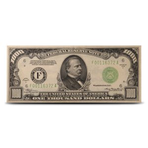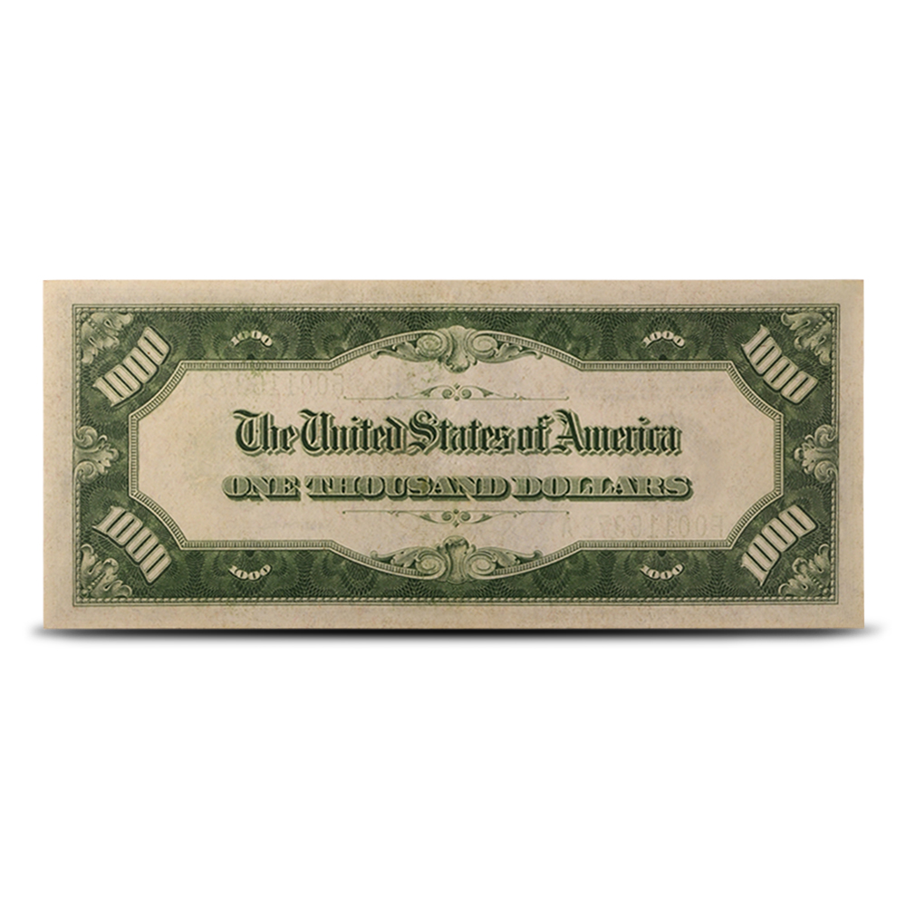 The 1934-A series $1,000 Federal Reserve Note is among the highest denominations ever released for everyday use in the United States. Each note shows Grover Cleveland on the front and comes certified for condition. Right now, certified 1934-A $1,000 Federal Reserve Notes are available at BullionMax.